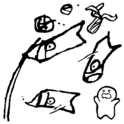 風で絡まった鯉のぼり(2種)